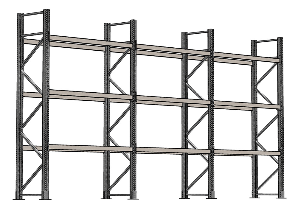 Palettenregal für den Außenbereich, Komplettregal, 4 Lagerebenen, H4500xB8590xT1100 mm, Palettengewicht bis 1000 kg, 9000 kg Feldlast, feuerverzinkt