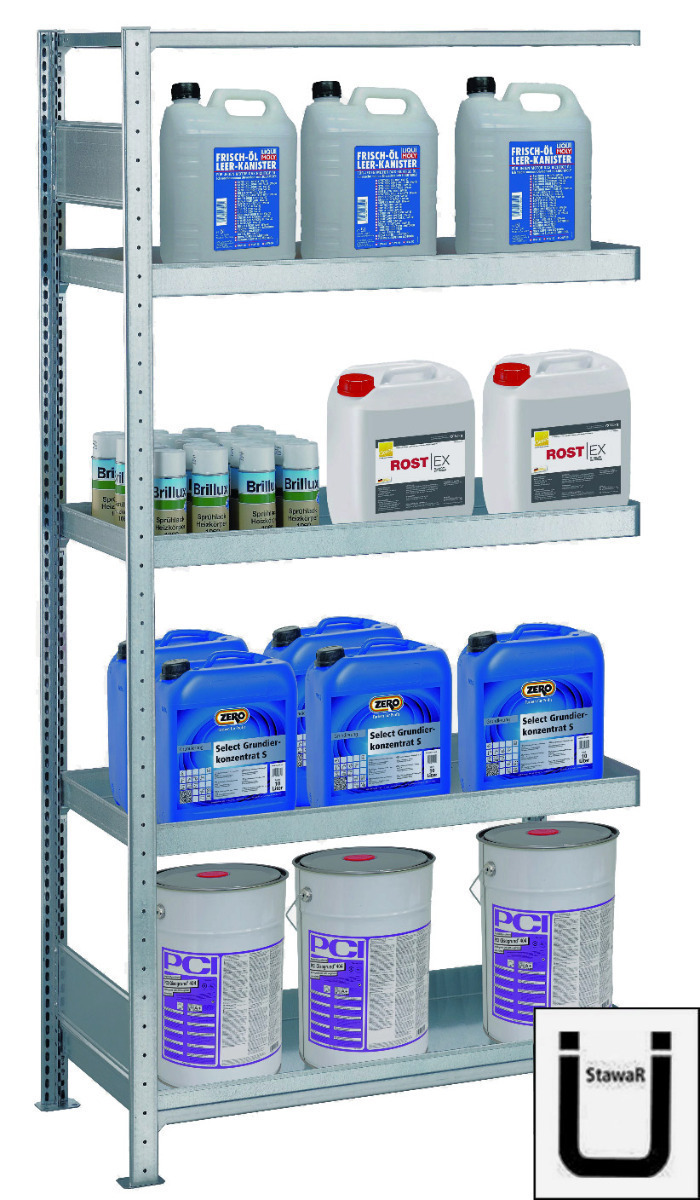 Umwelt-Wannenbodenregale, Anbauregal, H2000xB1000xT600 mm, Fachlast 150 kg, verzinkt, StawaR-konform